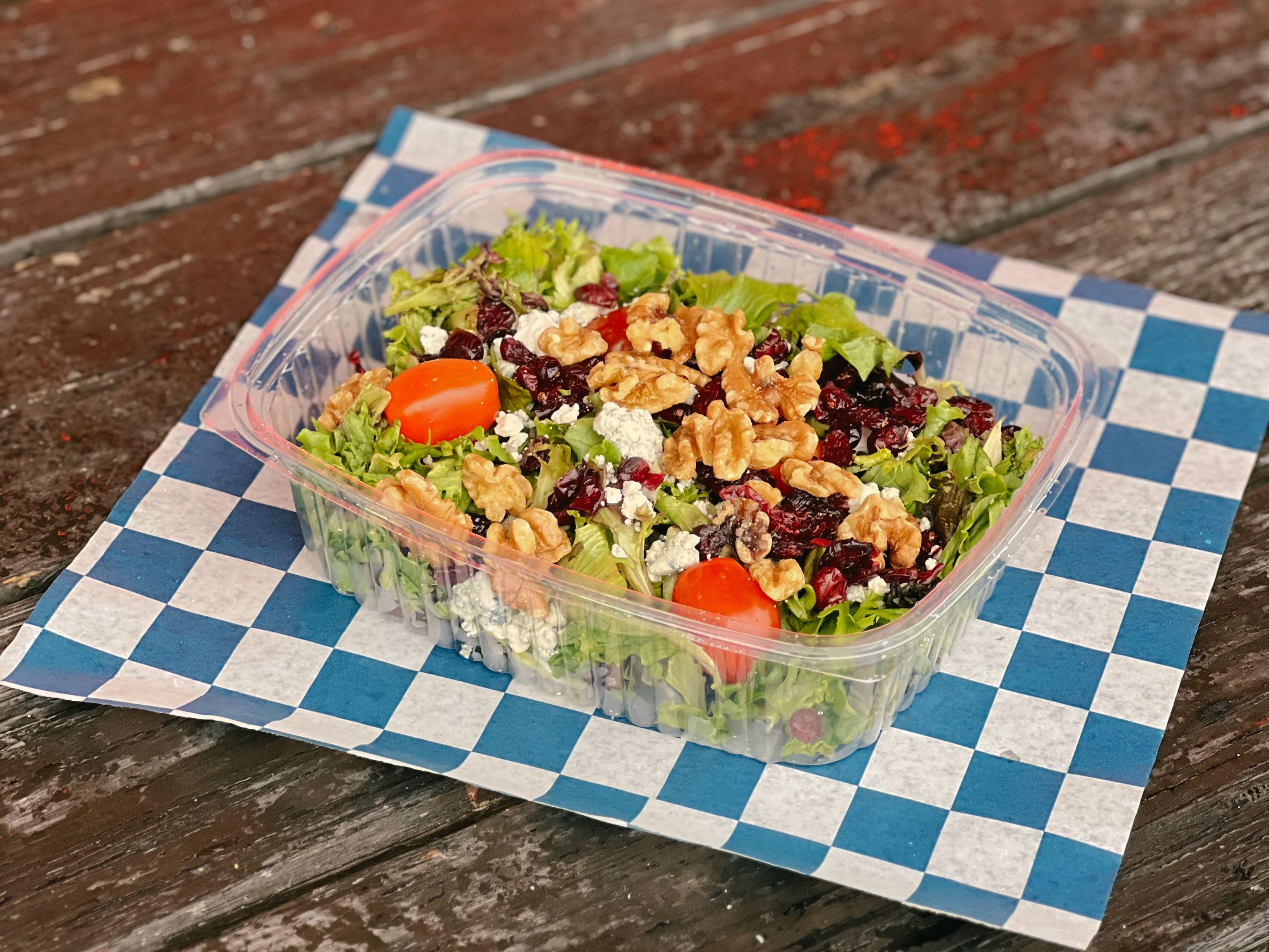 Spring Mix, Tomato, Bleu Cheese Crumble, Walnut, Craisins, Balsamic Vinaigrette.