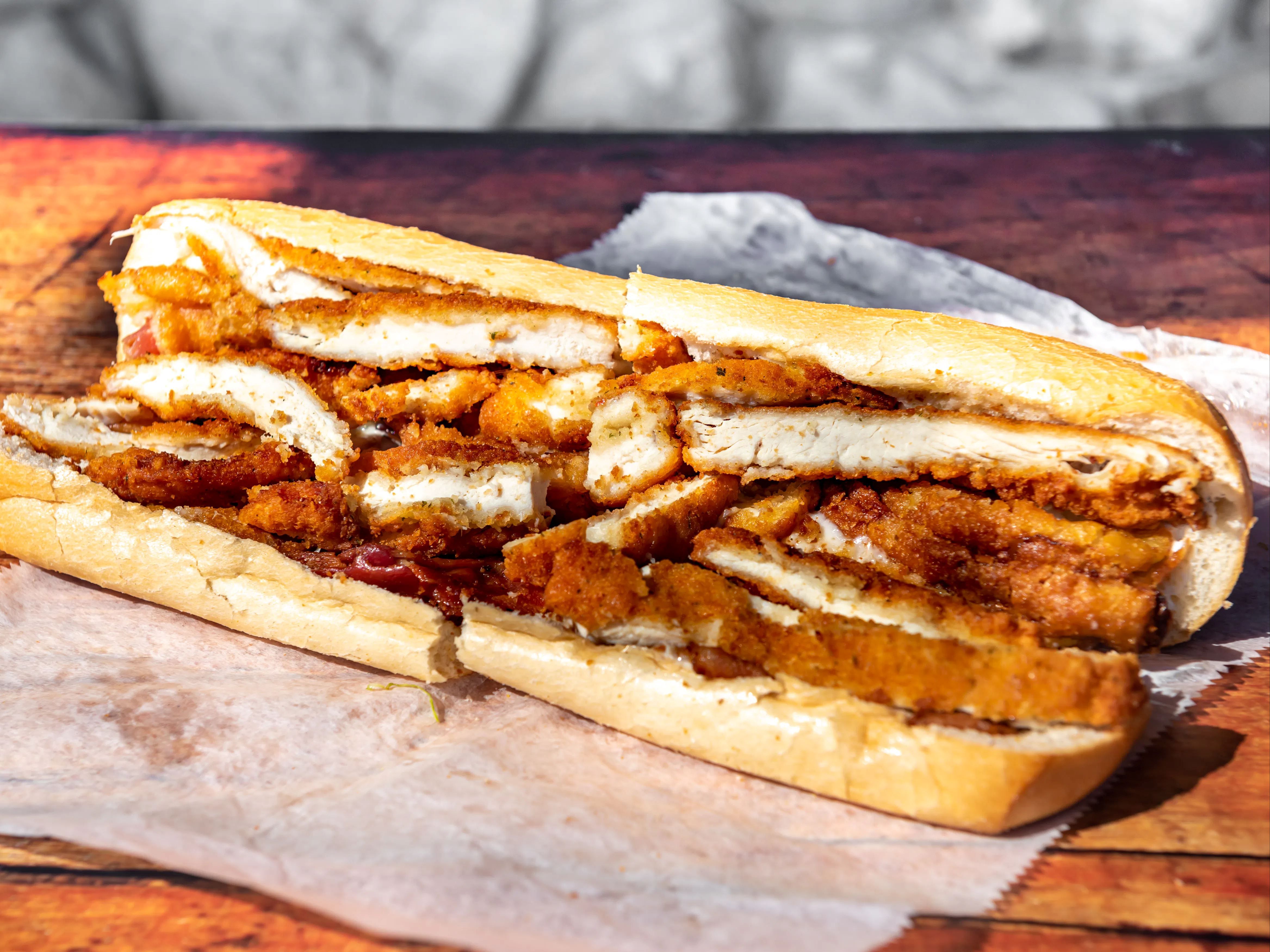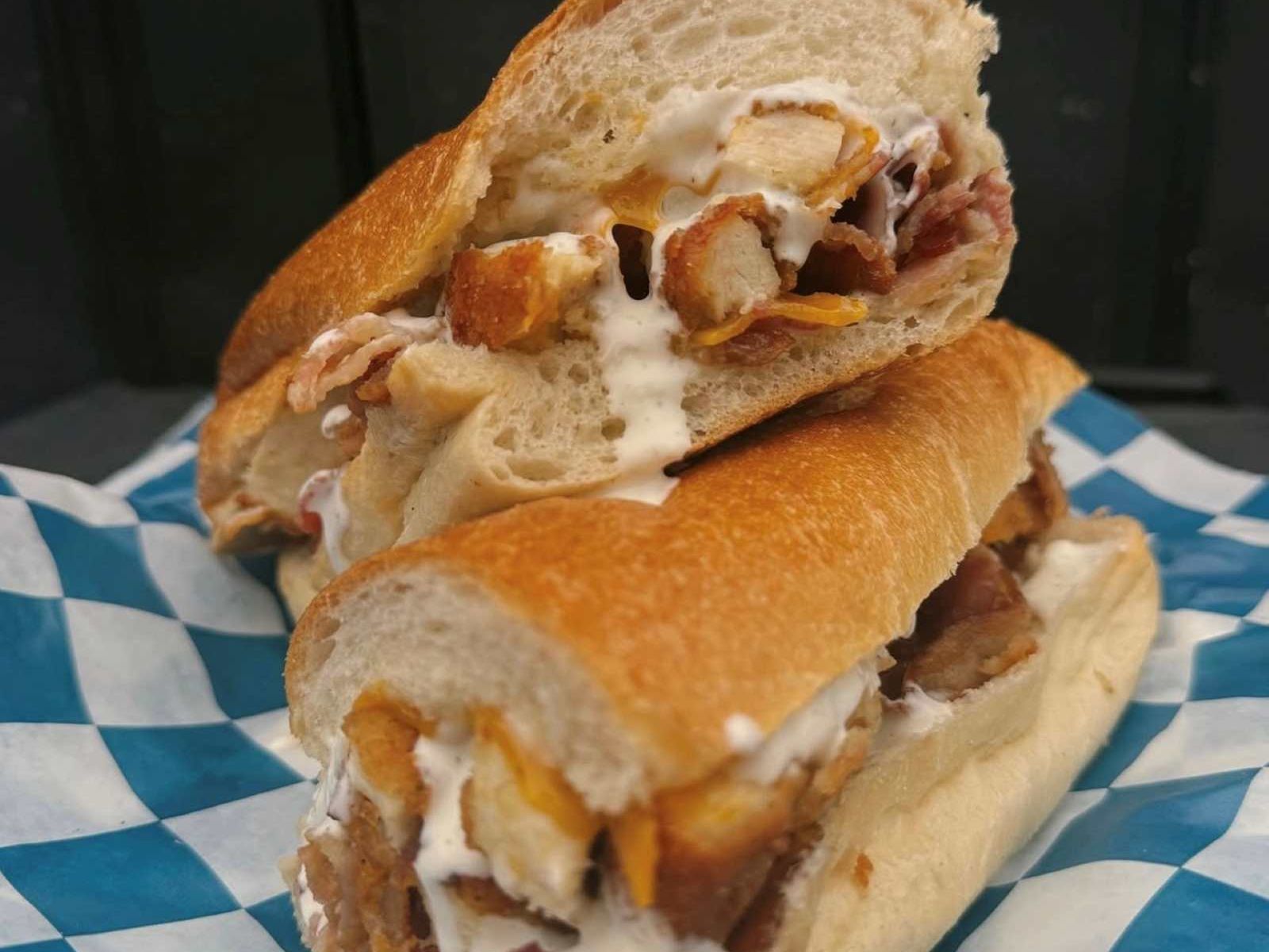 Breaded Chicken Cutlet, Bacon, Mozzarella Sticks, Onion Petals, Ranch on a Sub Only.