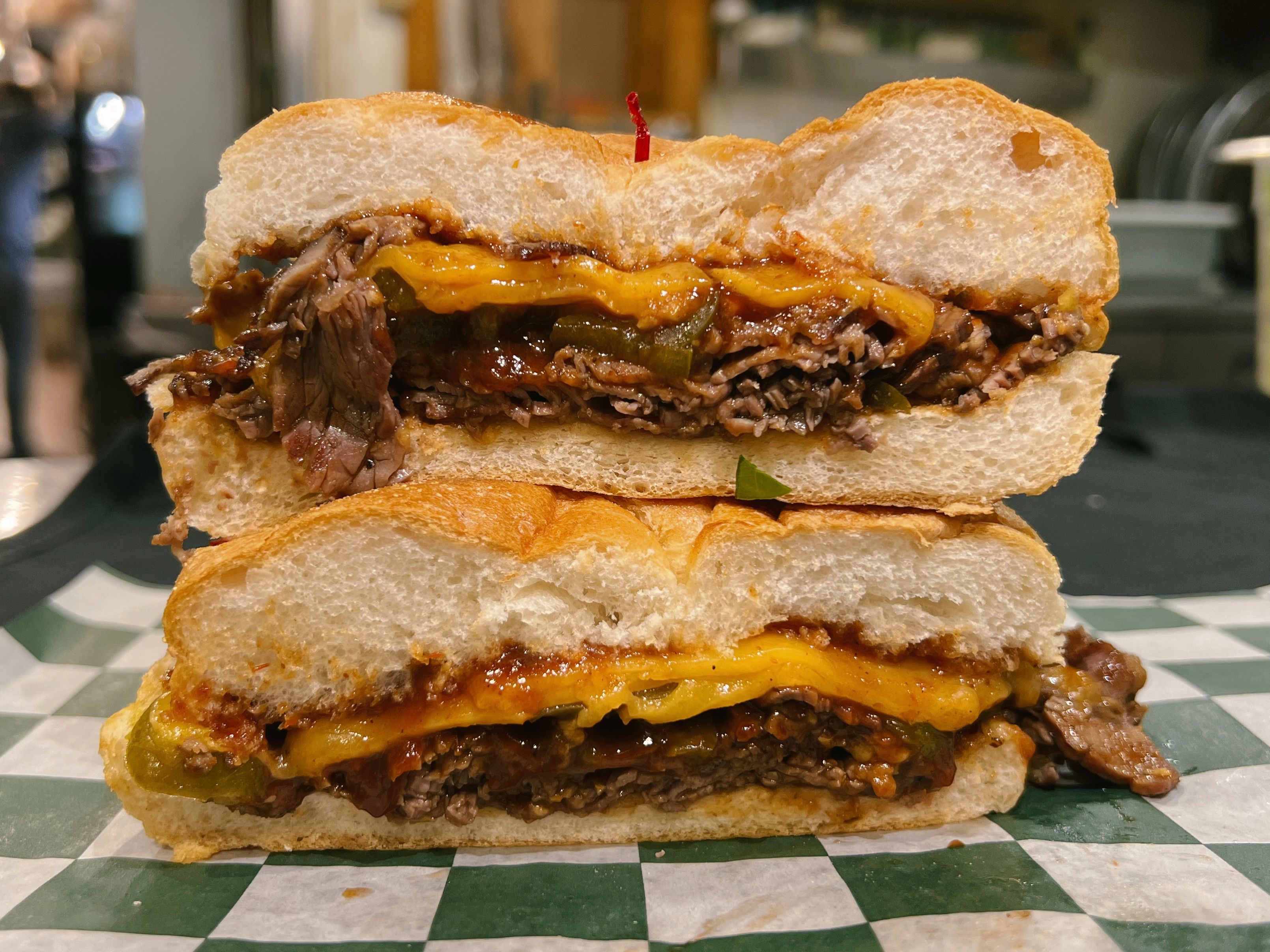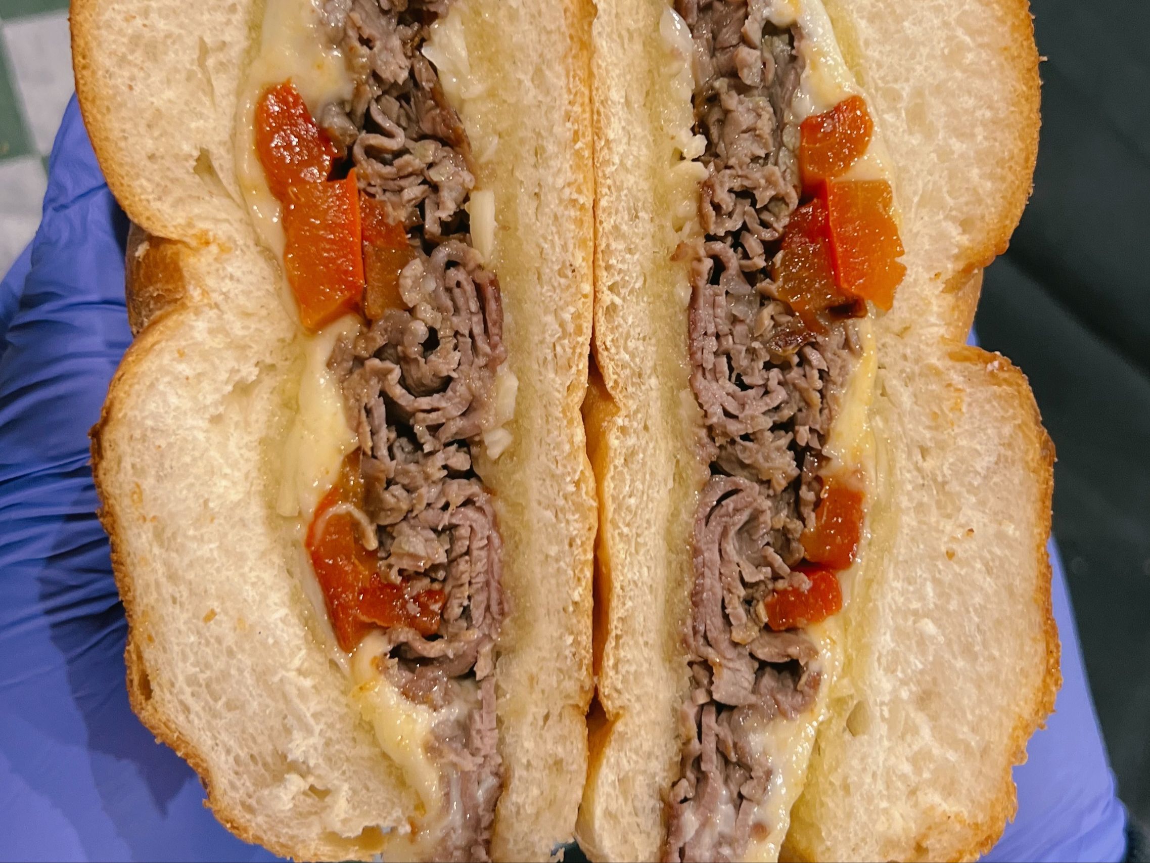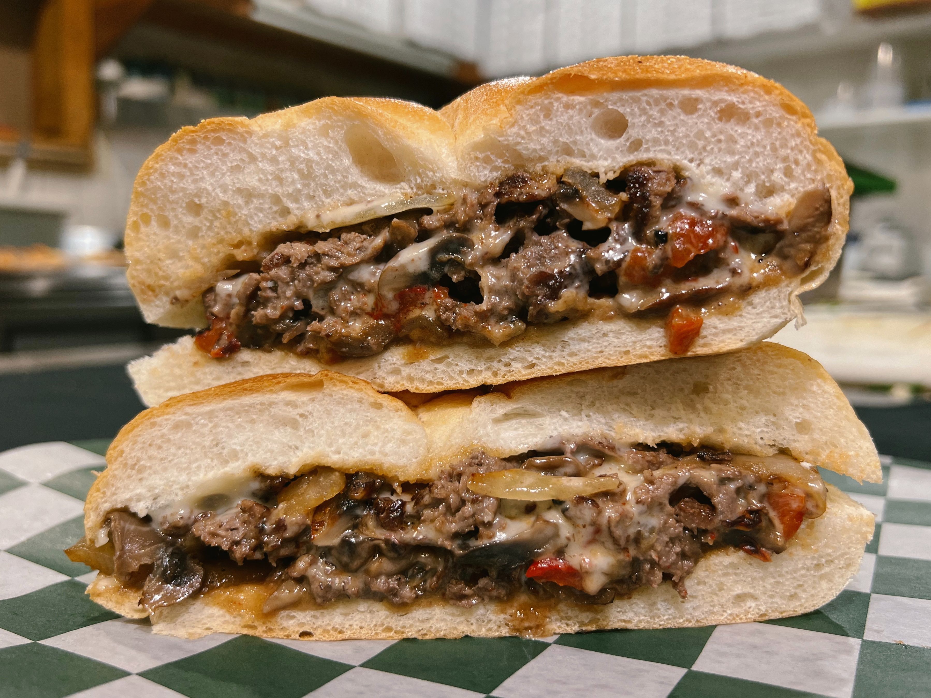Grilled Steak, Mushrooms, Peppers, Caramelized Onions & Melted Cheese.