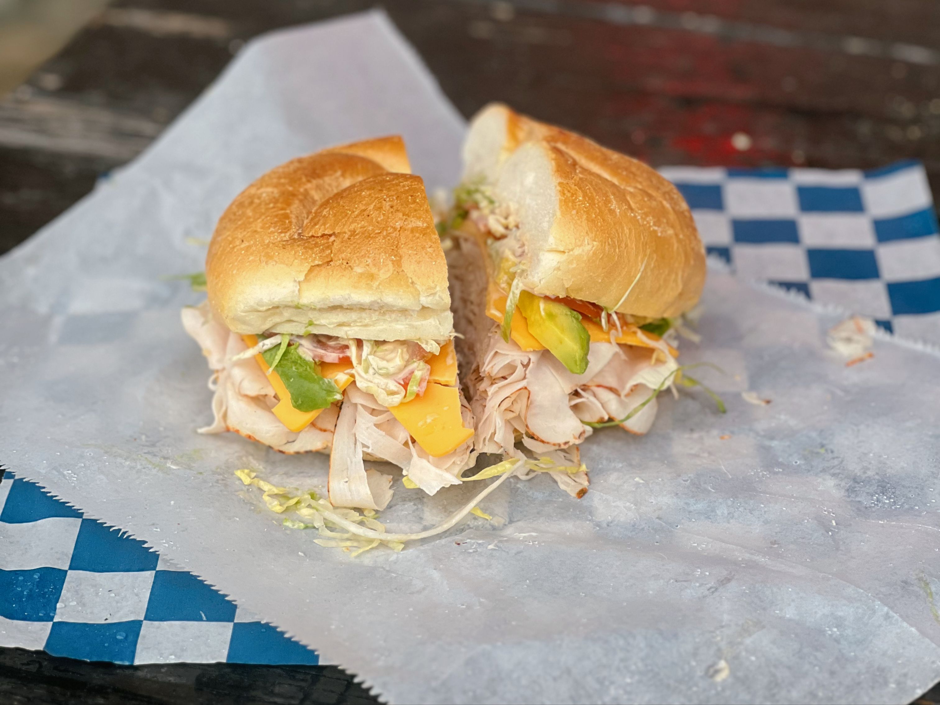 Turkey, Avocado, Cheddar Cheese, Lettuce, Tomatoes & Chipotle Mayo.