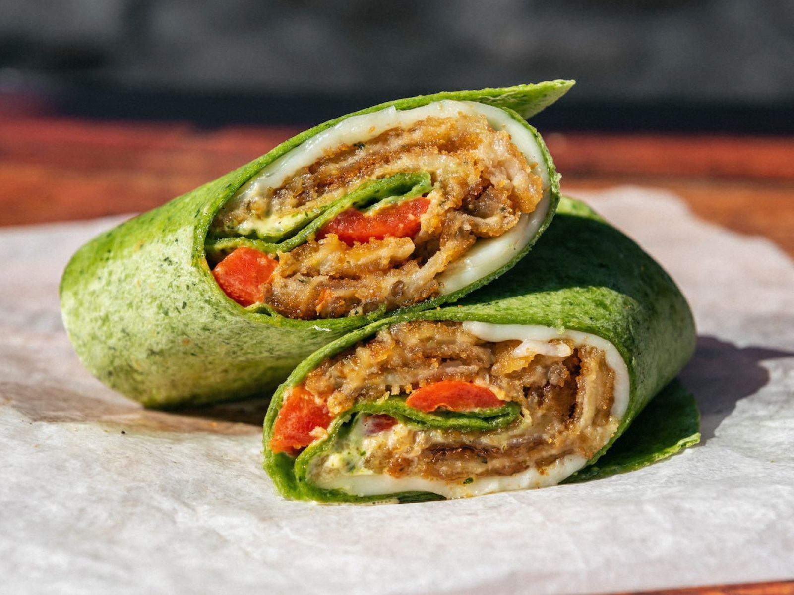 Breaded Sliced Eggplant, Roasted Red Peppers, Mozzarella Cheese & Pesto Mayo.