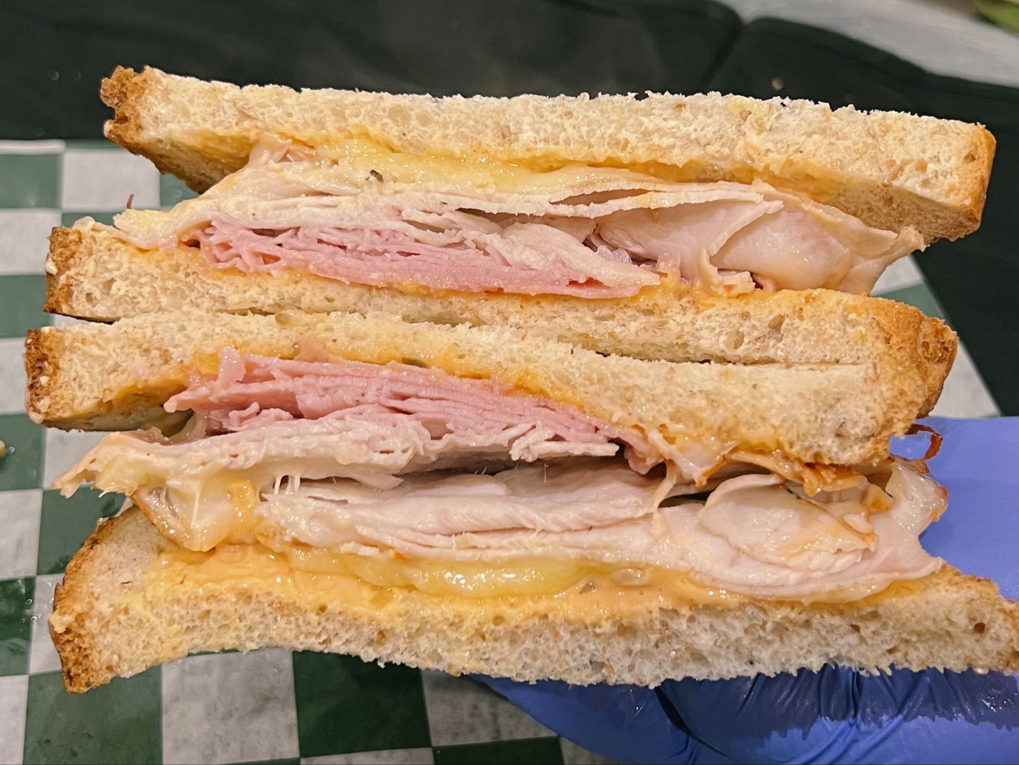 Grilled Ham, Turkey, Melted Swiss & Thousand Island.