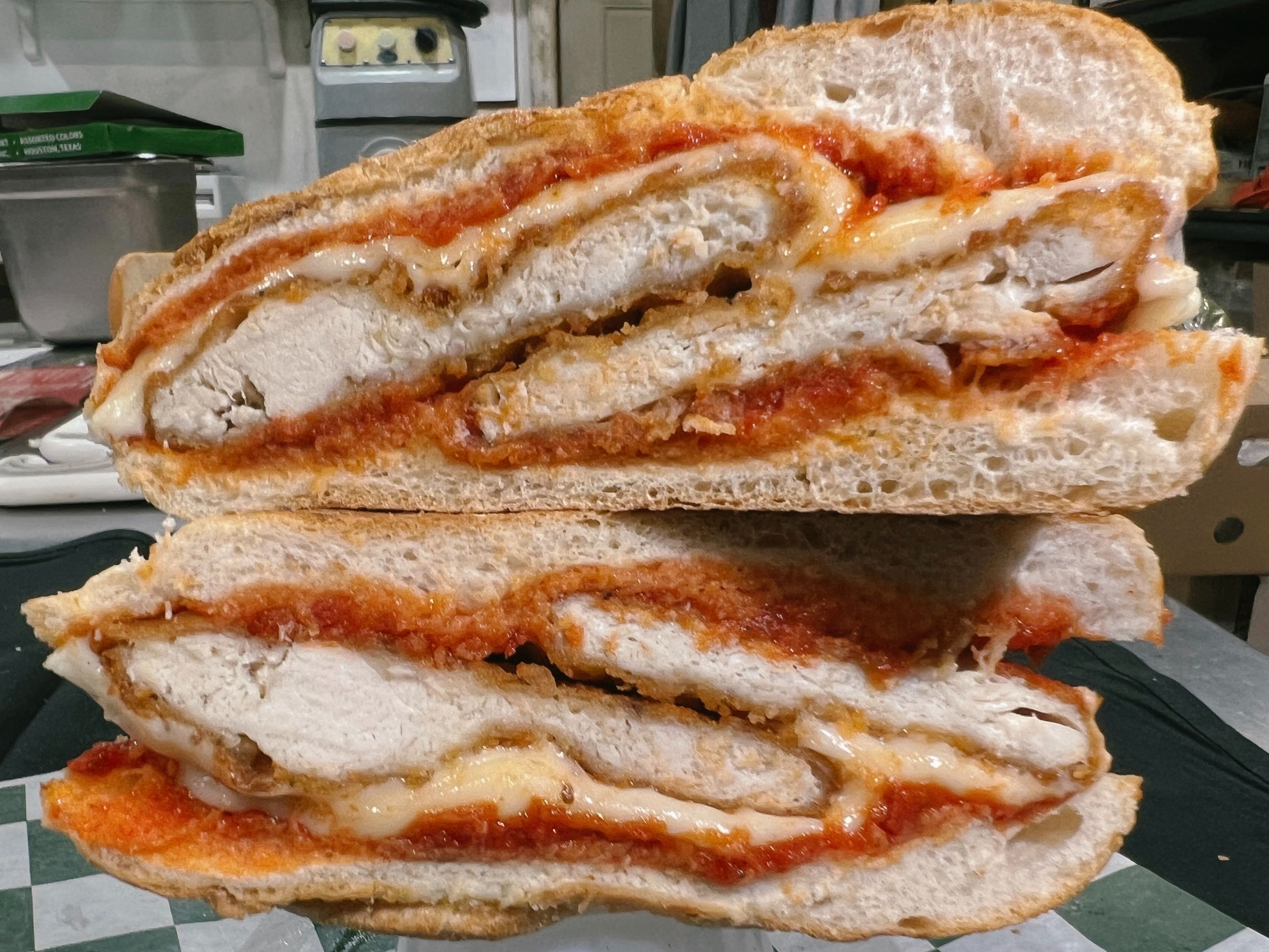 Breaded Chicken Cutlet, Mariniara Sauce & Melted Mozzarella Cheese.
