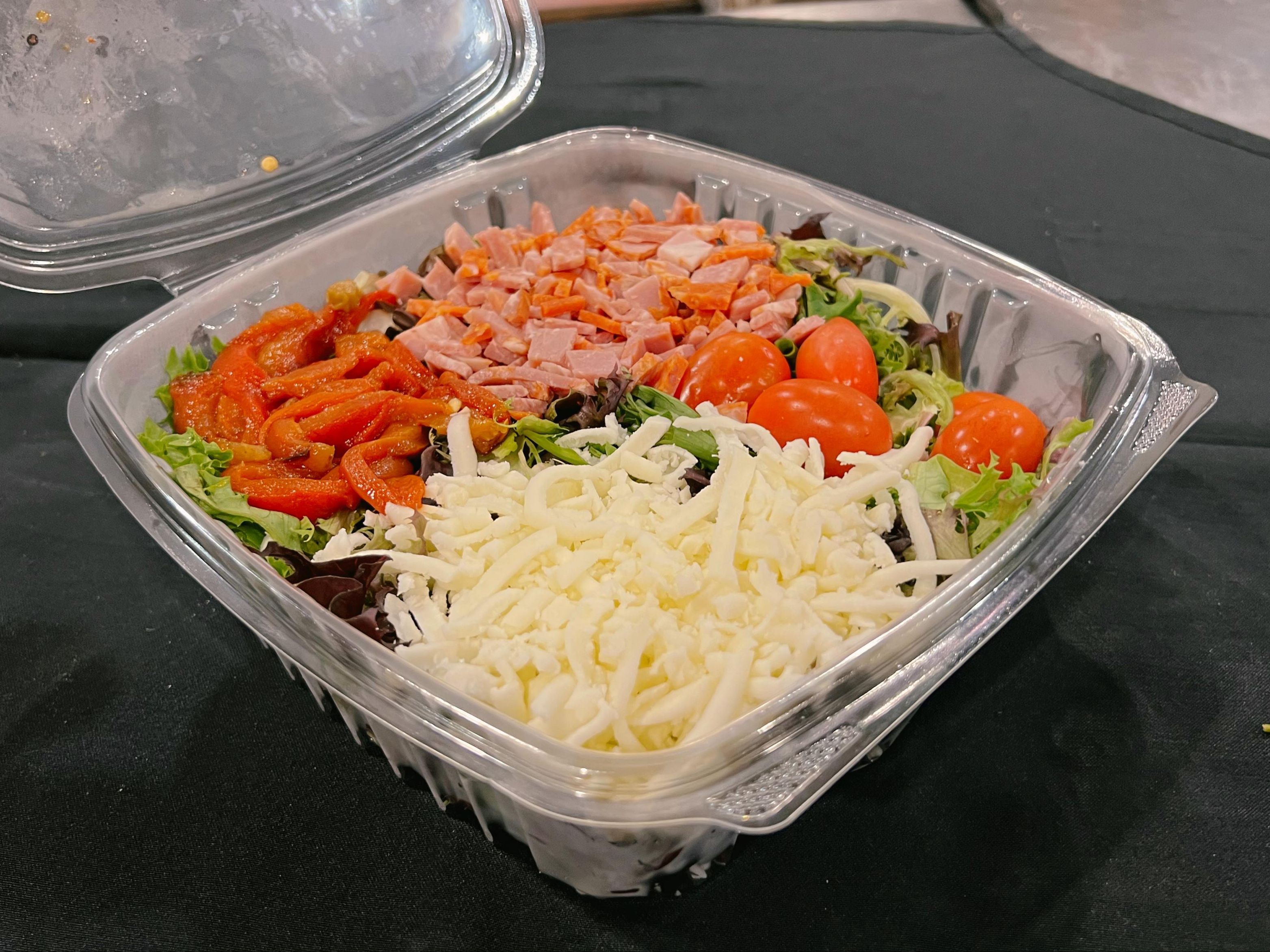 Spring Mix, Carrot, Red Pepper, Cucumber, Tomato, Ham, Turkey, Roast Beef, White American Cheese, 1000 Island.
